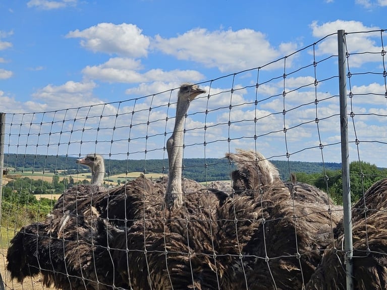 Am Samstag ging es los mit dem Ziel der Bayrischen Schanz im Spessart. Dort trafen sich alle nach unterschiedlichen schönen Tourerfahrungen zum gemeinsamen Mittagsimbiss. Das nächste Ziel – wieder zurück im Odenwald – war die Straußenfarm in Schaafheim. Wir wurden bei brüllender Hitze unter Schatten spendenden schirmen begrüßt. Die Haltung von Straußen und deren Verarbeitung bzw. die Vermarktung der Produkte auch rund um da Straußenei inkl. Führung durch die Straußenfarm, waren lehrreich und interessant. Auch in diesem Betrieb ist man durch Bürokratie zusätzlich belastet, wobei eine 24/7-Tätigkeit ja kaum mehr zu toppen ist. Das Inhaberehepaar lebt für seinen Betrieb und ohne Idealismus ist eine solche Tätigkeit auch nicht vorstellbar.